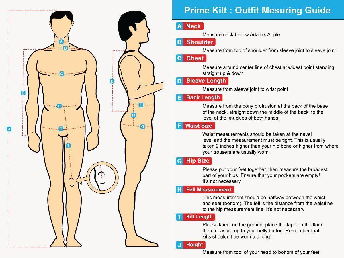 Please kneel on the ground, place the tape on the floor then measure up to your belly button. Remember that kilts shouldn’t be worn too long! |