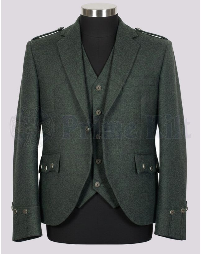 Step out with confidence at your next event in this stylish Dark Green Kilt Jacket with Waistcoat. Designed for men who value tradition and elegance, this jacket brings a modern twist to classic Scottish attire. Its deep green color stands out, making it the perfect choice for weddings, parties, Highland games, or formal gatherings. Crafted with attention to detail, it gives you a smart look and a comfortable fit, pairing seamlessly with kilts or dress trousers.Features and Benefits of the Dark Green Argyll Jacket