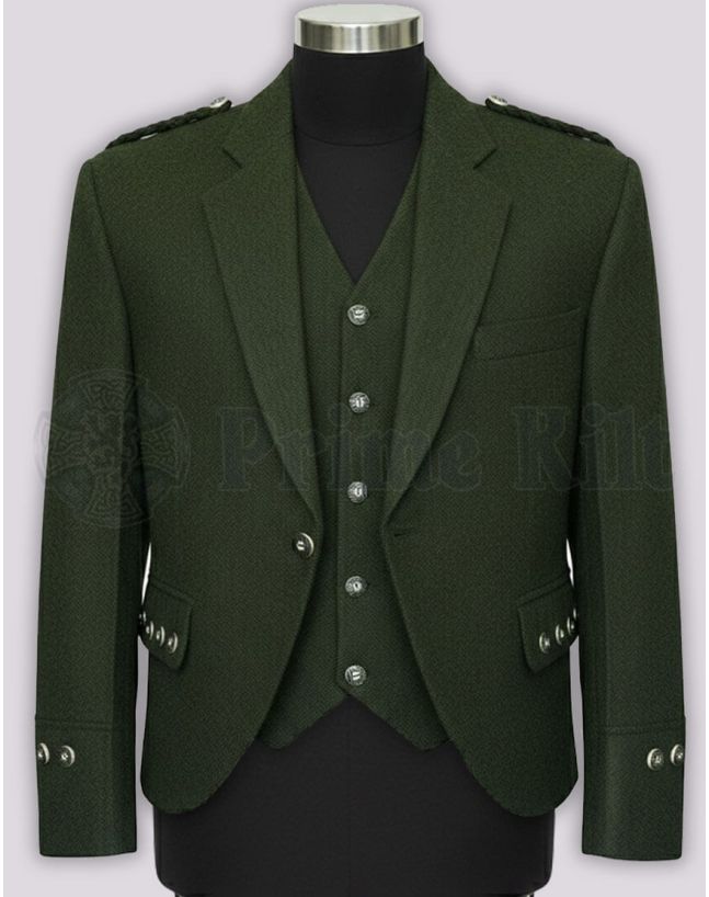 Step into timeless Scottish style with the Green Tweed Kilt Jacket and Waistcoat. Designed for men who value tradition and elegance, this set is a standout choice for any formal event, wedding, or Highland gathering. The fabric's forest green hue offers a fresh twist on a classic look, while keeping you comfortable. If you are looking to buy Argyll kilt jacket set or searching for a green tweed formal jacket for sale, this is the smart pick you can trust. This men’s Scottish kilt jacket and vest set uses quality materials and expert tailoring to make each occasion feel special. It's easy to pair with your favorite tartan kilt and sporran for a complete Highland ensemble. Whether it's your first time buying, or you’re adding to your collection, enjoy a piece that brings Scottish pride and timeless appeal wherever you go.Why Choose This Tweed Kilt Jacket and Waistcoat?