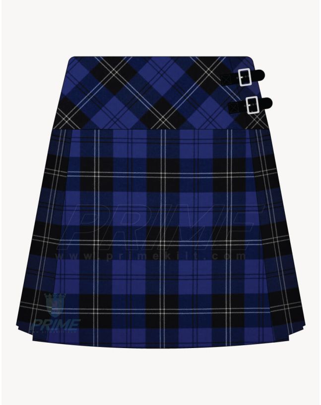 Step into elegance with the Ramsay Blue Tartan Kilt for Women. This short-length kilt boasts a stunning tartan design, perfect for any occasion. Adjustable leather straps ensure a fantastic fit, while the soft cotton lining guarantees comfort. Made to order just for you!